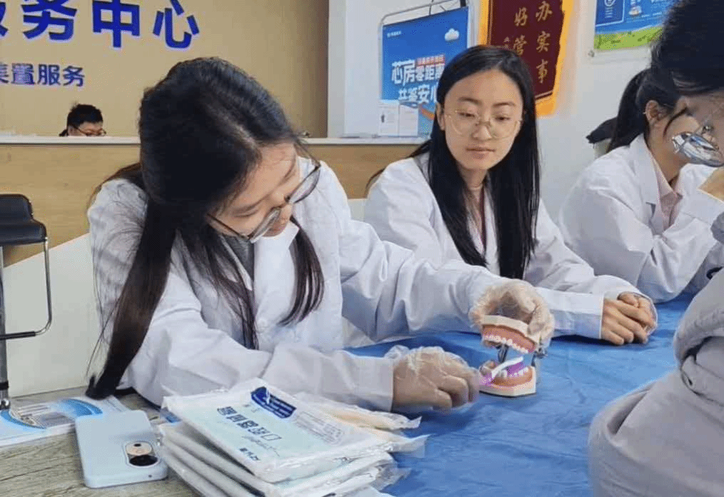 3月14日,2024级口腔医学专科1-6班志愿学子走进邢台市信都区美的公园天下、美的未来城社区开展义诊。志愿者们提前线上线下联动宣传,活动现场分工协作,为居民免费测量血压并给予健康建议,开展口腔健康科普宣教,指导正确刷牙、使用牙线,同时提供针灸、耳穴等中医养生技术体验,细致解答居民健康疑问、给出专业诊疗建议,让居民在家门口享受便捷的健康服务。